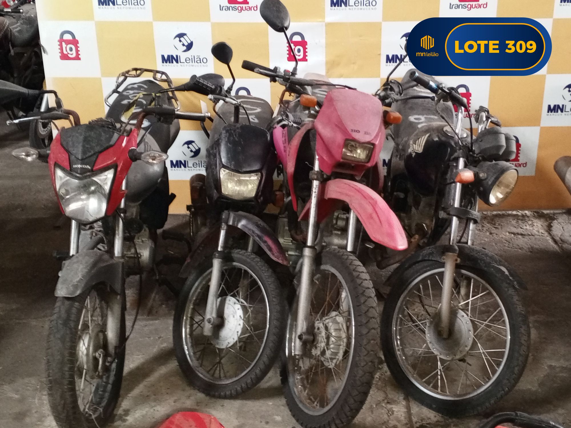 SUCATAS - HONDA/CG 125 FAN KS, PLACA: NNT0096-RN, 2009; - HONDA/NXR125 BROS ES, PLACA: MXL9258-RN; - HONDA/POP100, PLACA: NNY2147-RN, 2010; - HONDA/CG150 TITAN MIX KS, PLACA: NQD6970-PB, 2009.