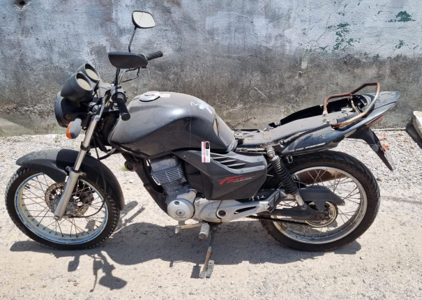 LOTE 18: Motocicleta, marca HONDA, modelo CG 150 FAN ESDI, ano 2012/2012, placas NNX-8374, na cor preta, que apresenta a lente do farol totalmente fosca, guidão com sinais de ferrugem, tanque de combustível com arranhões e o retrovisor do lado direito com o espelho quebrado, ausente o banco do motorista, bagageiro enferrujado; pedaleiras em razoável estado de conservação, coletor e cano de escape enferrujado, chassi enferrujado na sua parte dianteira, pneu dianteiro (marca VIPAL) em bom estado de conservação e pneu traseiro da marca MICHELIN em razoável estado de conservação. Veículo sem ignição e sem a sua chave, o que impossibilitou a verificação do seu funcionamento. Avaliado no total de R$ 3.300,00 em 10/02/2025;