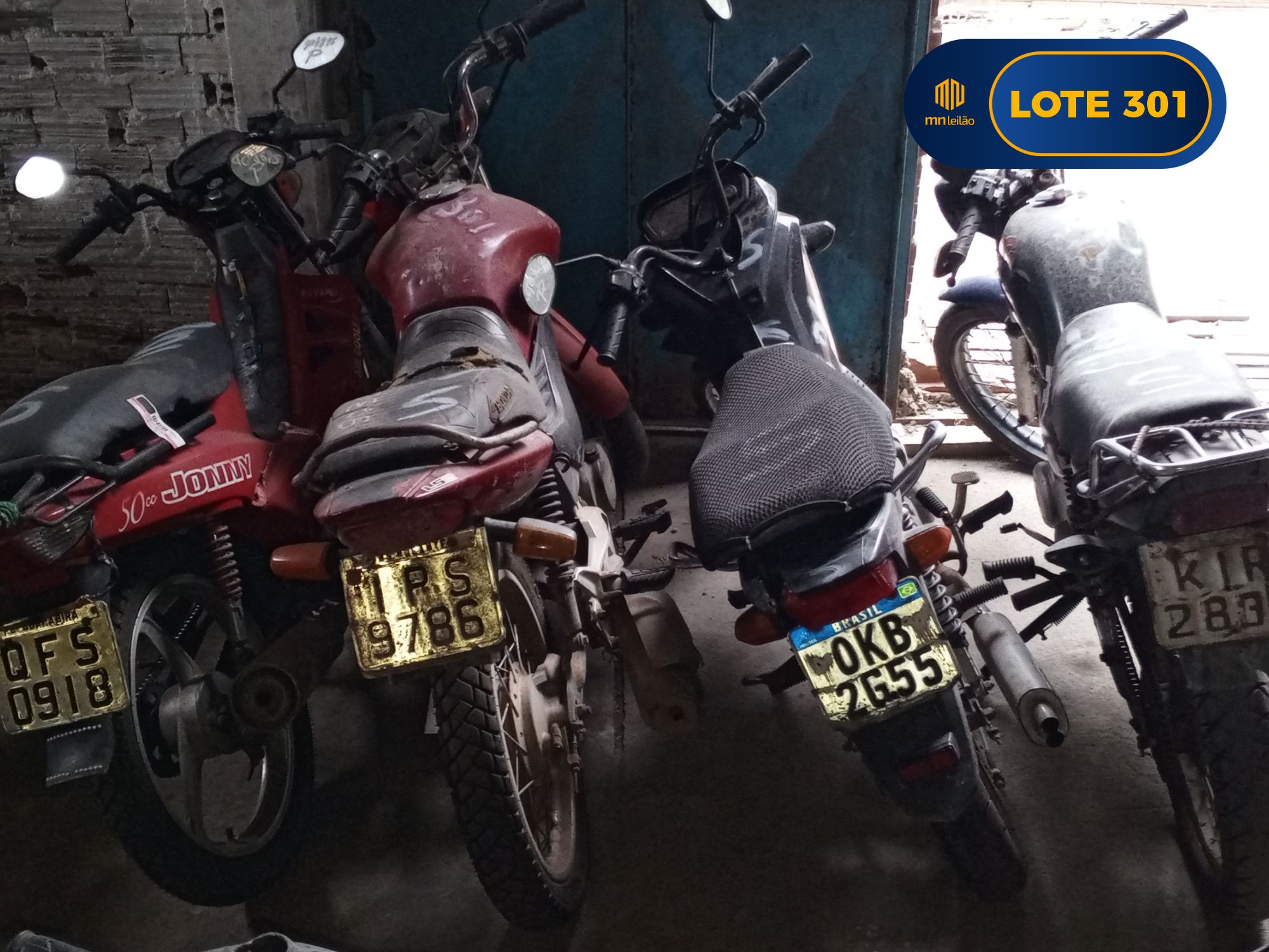 SUCATAS - I/BASHAN JONNY HYPE 50, PLACA: QFS0918-PB, VERMELHO, 2010/2011; - HONDA/CG 125 FAN ES, PLACA: IPS9786-RS, VERMELHO, 2009; - HONDA/POP100, PLACA: OKB2G55-RN, PRETO, 2013; - HONDA/CG 125 TITAN, PLACA: KIR2835-PE, AZUL, 1996.