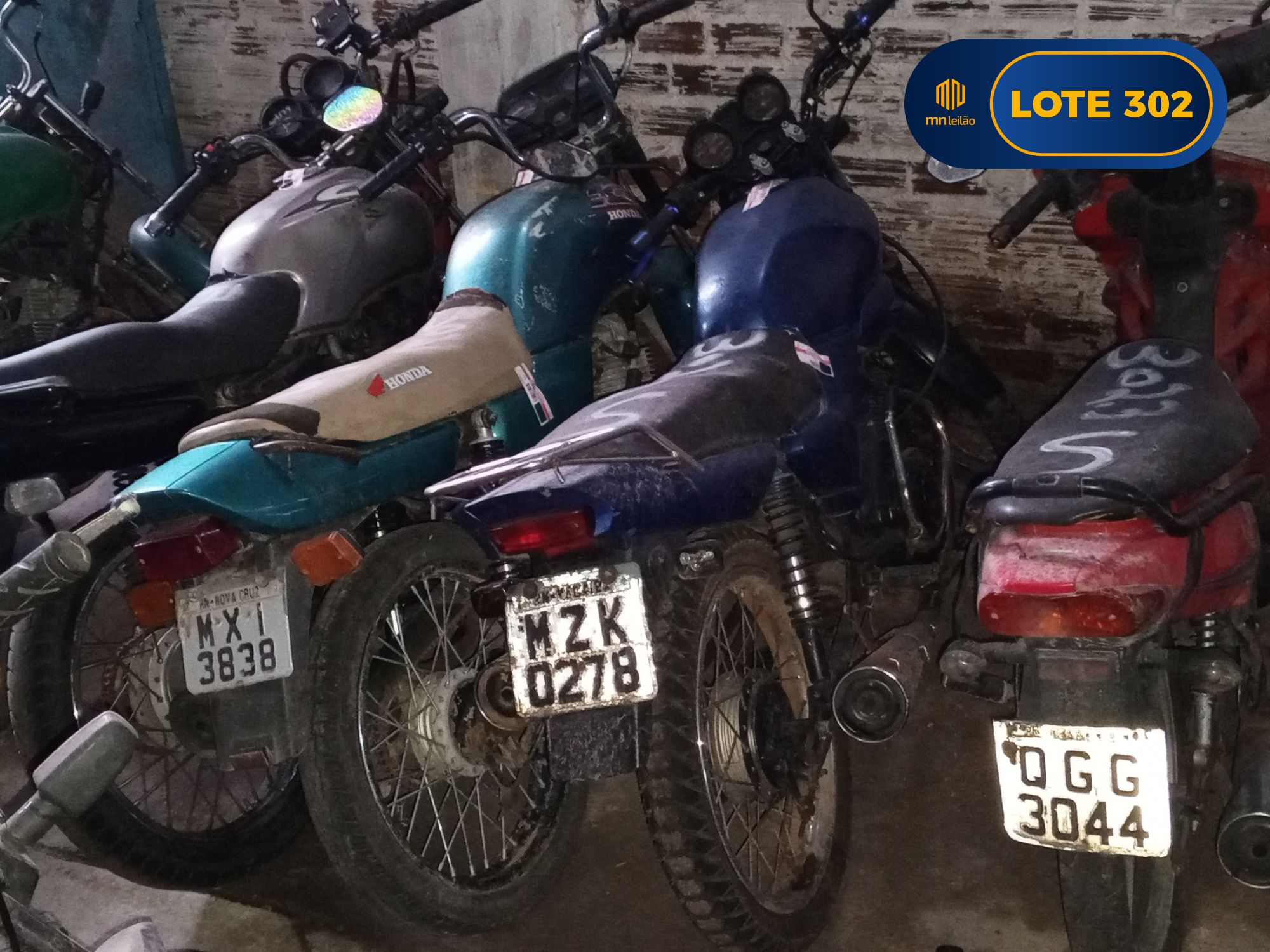 SUCATAS - HONDA/CG 125 FAN KS, PLACA: NNT0096-RN, 2009; - HONDA/NXR125 BROS ES, PLACA: MXL9258-RN; - HONDA/POP100, PLACA: NNY2147-RN, 2010; - HONDA/CG150 TITAN MIX KS, PLACA: NQD6970-PB, 2009.